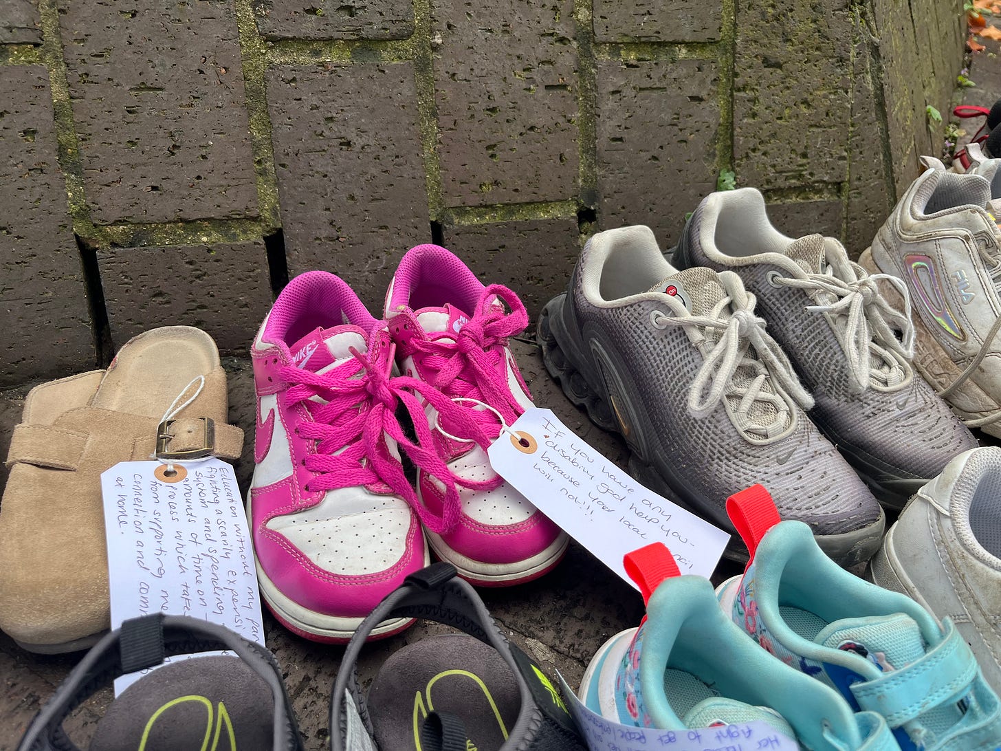 Each pair of shoes outside the county hall had a written tag detailing their SEND child’s experience with education, their EHCPs and their treatment from the Oxfordshire County Council (OCC).