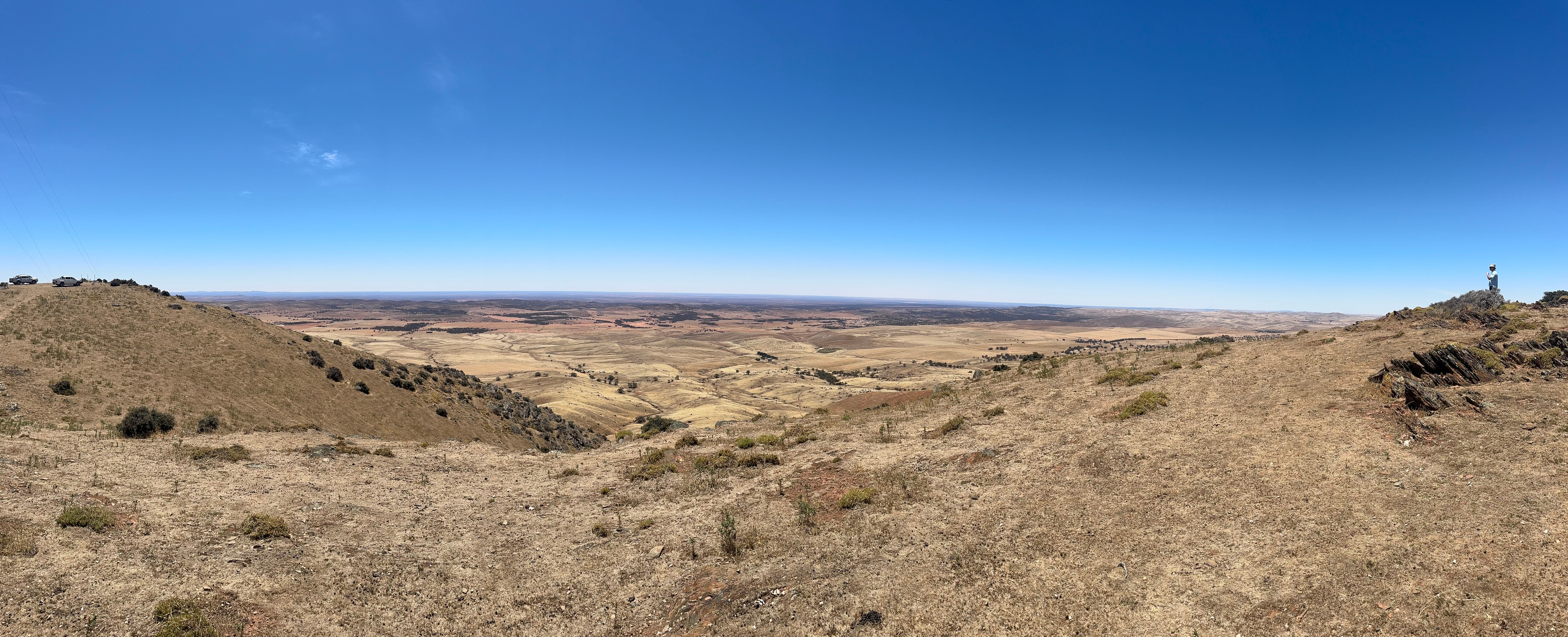 Once at the top, covered in awe at the far reaching views and the fact that the expedition made it to here. The hot terrain is sparse. Tony tells me “it’s quite untamed. It’s not easy to muster.” But how much more inhospitable would it have been 180 years ago? There is nothing up there apart from a stone chair, a trig point and a modern intrusion of two masts.